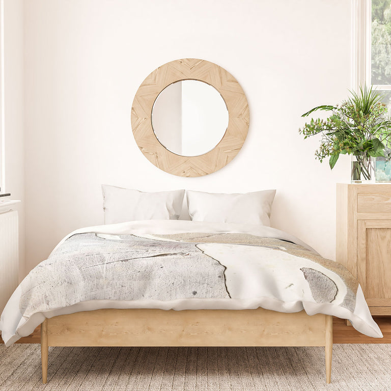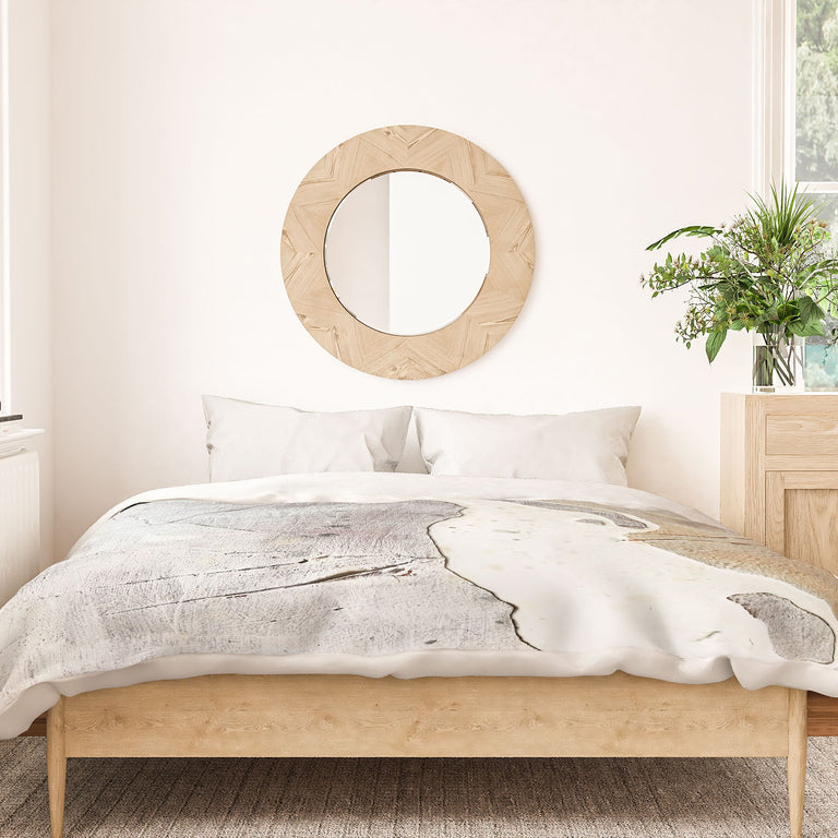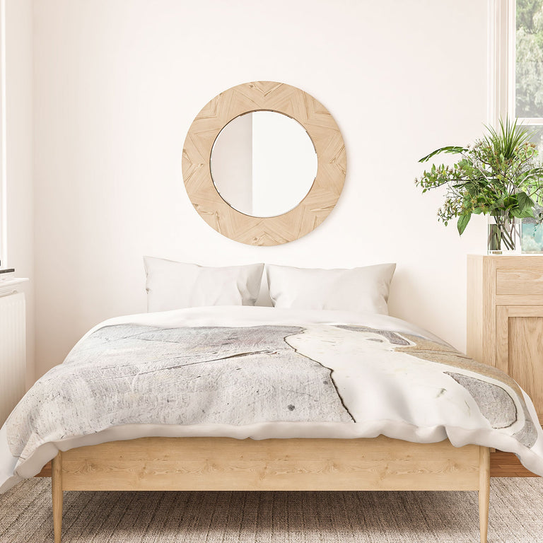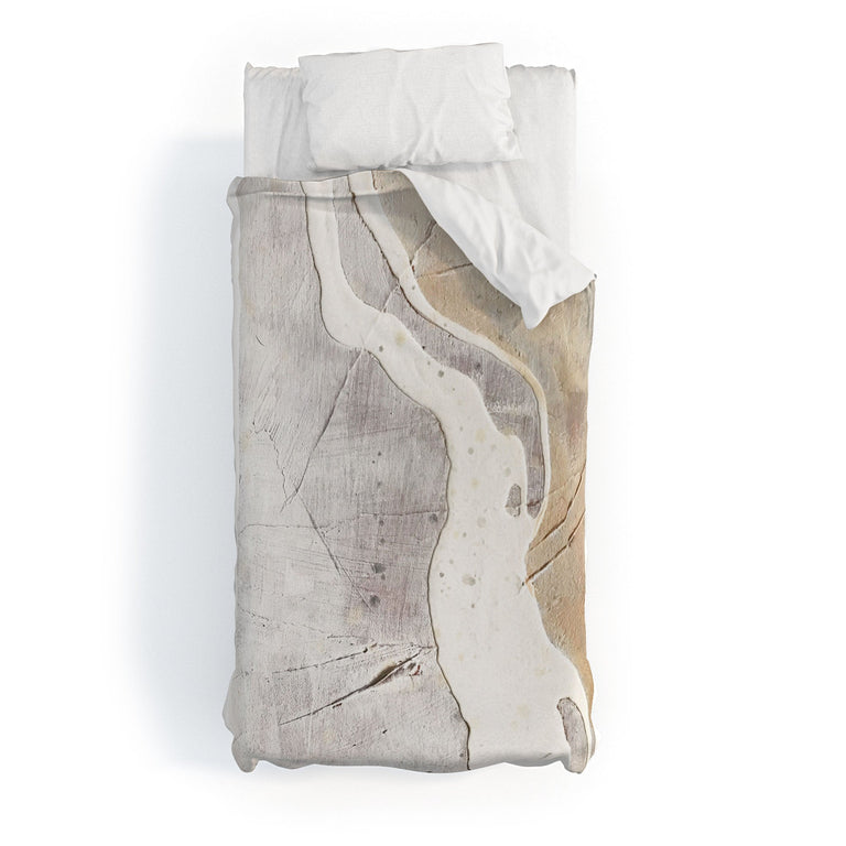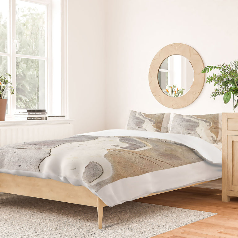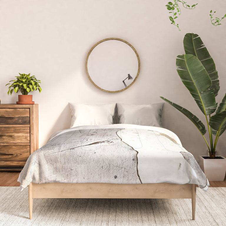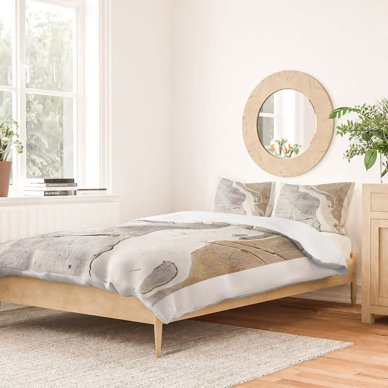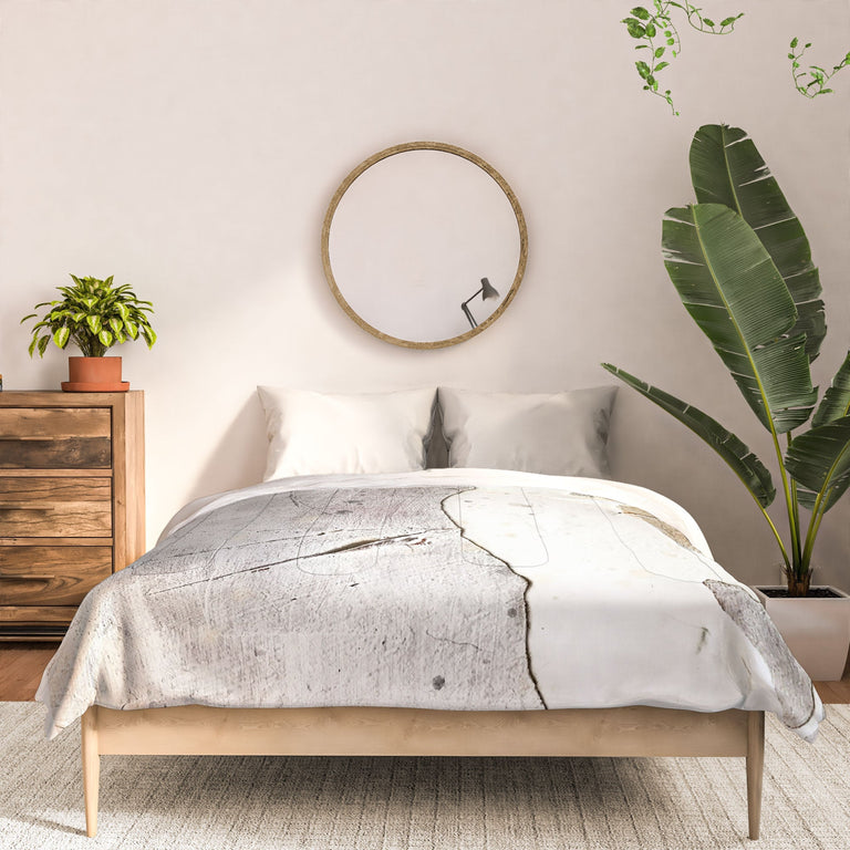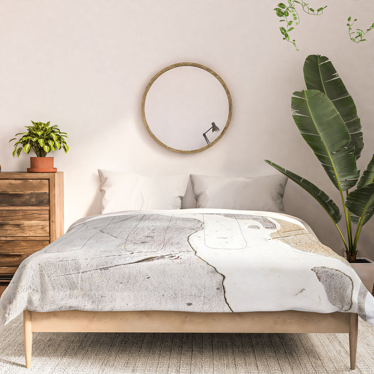 The printed cotton duvet covers have art printed on top with a white underside. It comes with a hidden zipper and corner ties to keep your duvet insert (not included) in place.