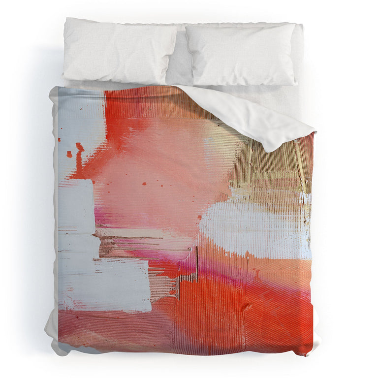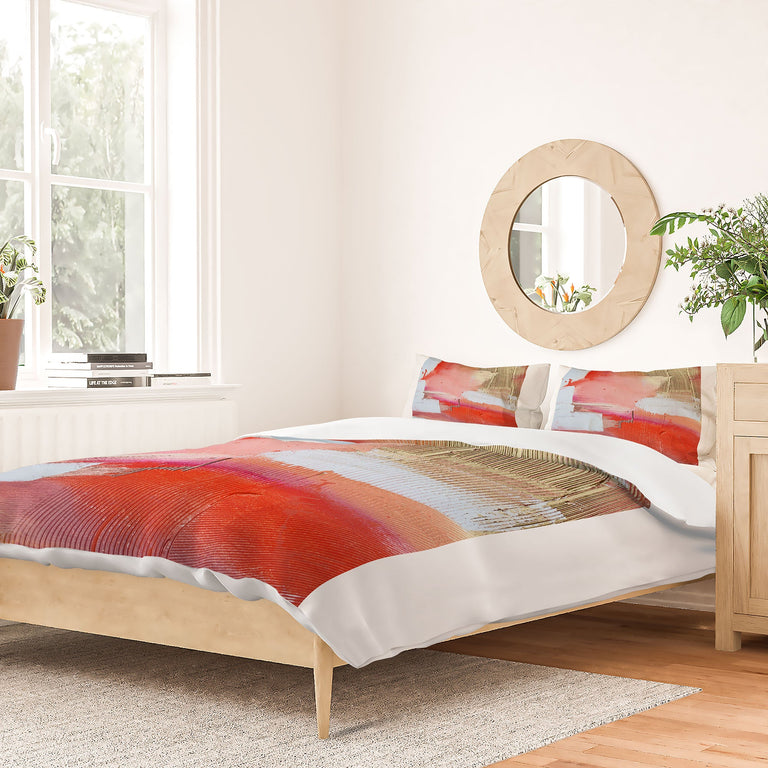 The printed cotton duvet covers have art printed on top with a white underside. It comes with a hidden zipper and corner ties to keep your duvet insert (not included) in place.