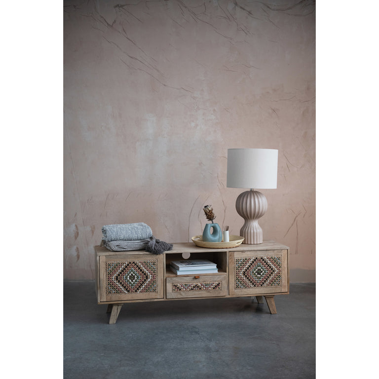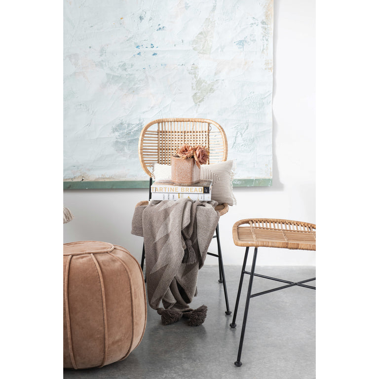 60"L x 50"W Woven Recycled Cotton Blend Throw w/ Aztec Pattern & Tassels, Tan Color