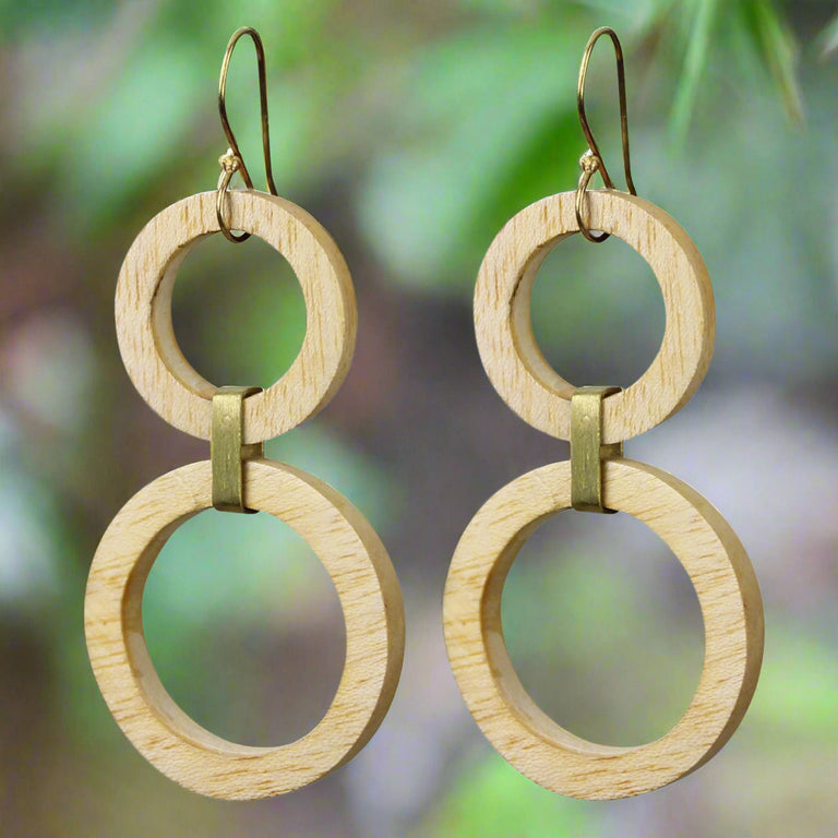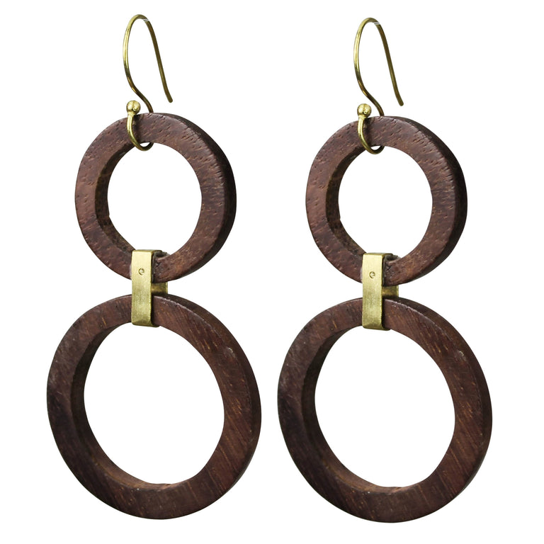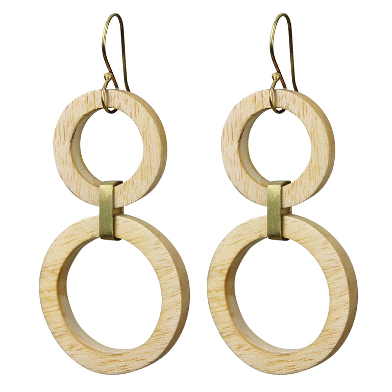 Circles of wood are bound together with brass creating a union of form that turns the simple round shape into a structural statement.