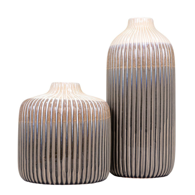 Introducing CASTOR VASES - a touch of elegance for your home. Crafted from fluted stoneware, these vases feature a subtle glazing that evokes the serene beauty of the beach. Adorn your living spaces with these artful pieces and bring a sense of sophistication to any room.
