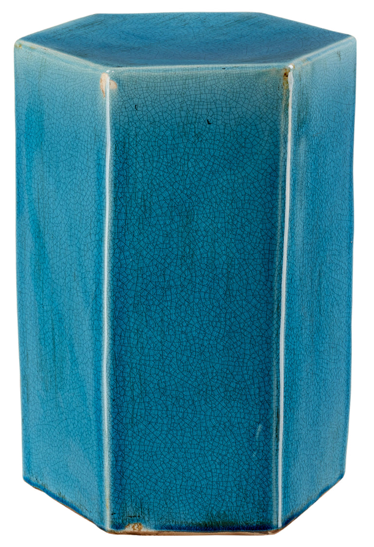 Add a burst of color to any indoor or outdoor space with this eye-catching side table that doubles as an extra seat or as a planter pedestal. Handcrafted from ceramic by skilled artisans, this table features a hollow center and hand-glazed finish that makes cleanup a breeze.