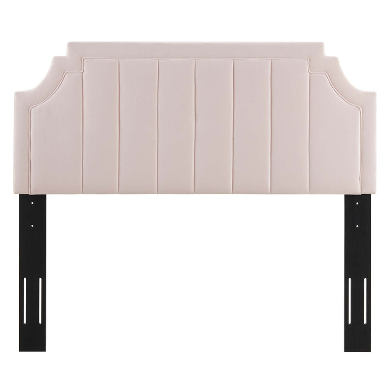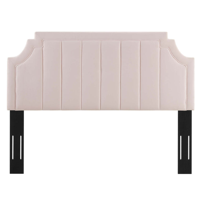 With vertical tufting, a unique silhouette, and luxurious texture, the Alyona Channel Tufted Performance Velvet Full/Queen Headboard brings glam deco style and vintage modern elegance to your master bedroom or guest bedroom. This full or queen size headboard features a beautiful shape, channel tufting, and subtle French piping. Upholstered in soft, stain-resistant performance velvet, this padded headboard offers supportive comfort while sitting up in bed resting or relaxing. A beautiful backdrop for a variety of bedding styles, this adjustable headboard fits full or queen beds with its three mounting positions. Assembly required.