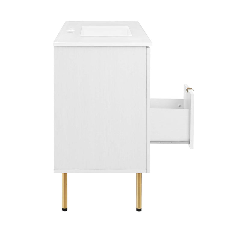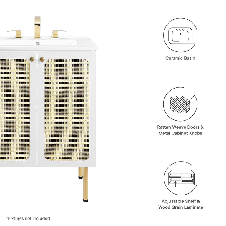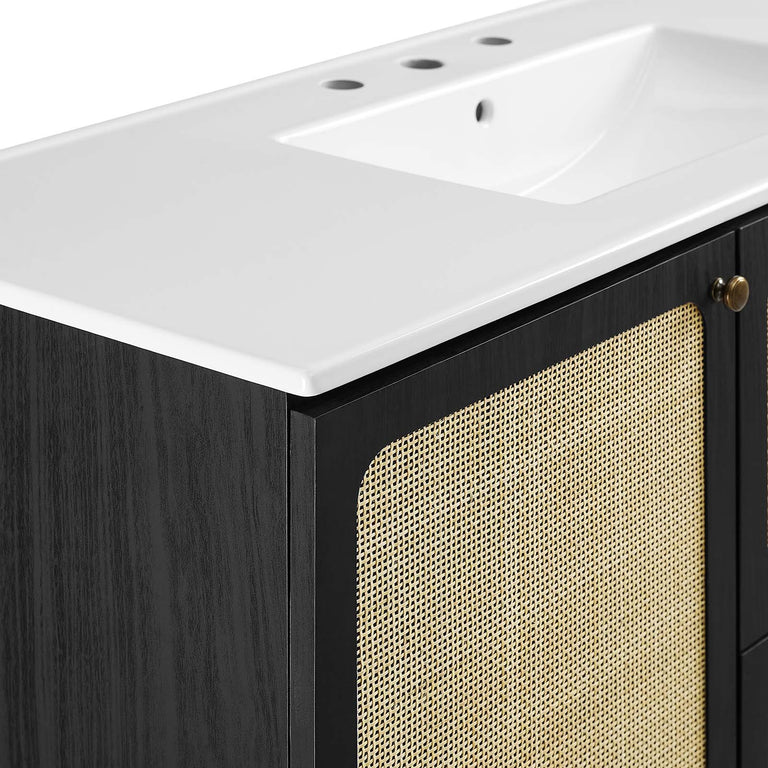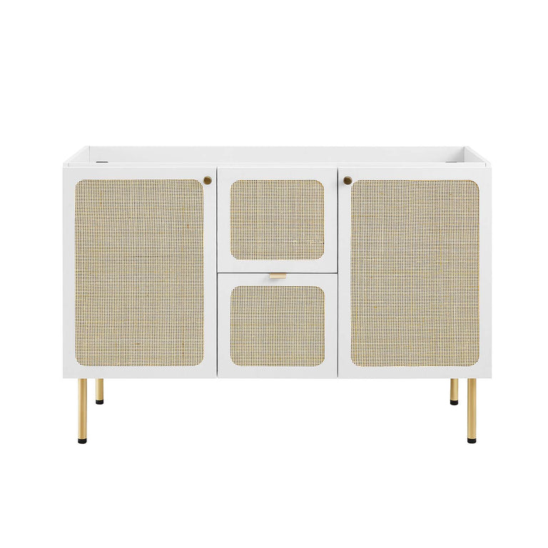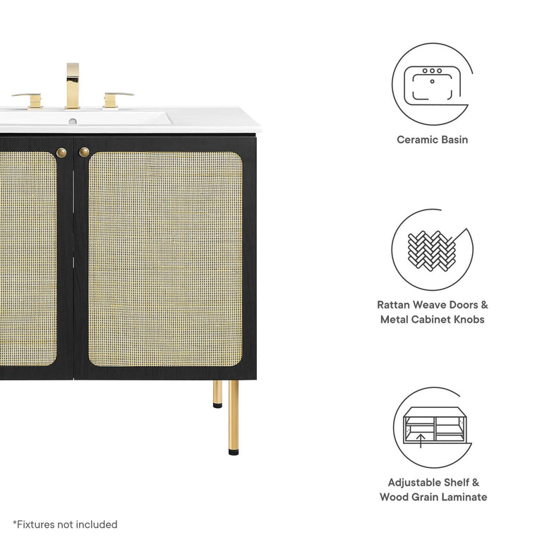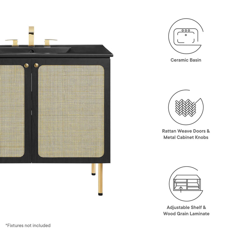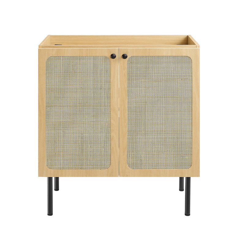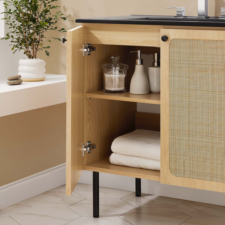 MDF and Particleboard Wood Grain Laminate Adjustable Shelf Metal Cabinet Knob Rattan Weave Door Ceramic Sink Basin Optional And Fixtures Not Included Assembly Required