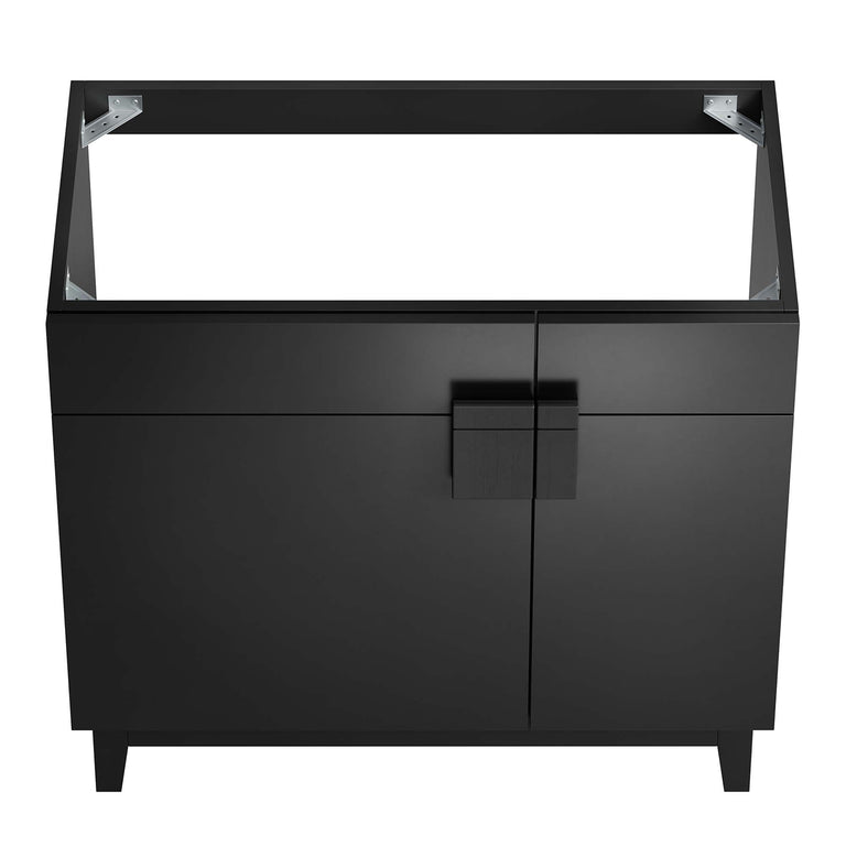 Particleboard & Melamine Laminate Tapered Rubberwood Legs Hinged Doors Plumbing Cut-Out Sink Basin Not Included Non-Marking Foot Caps Assembly Required