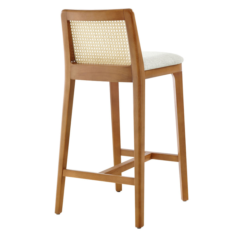 Elevate your kitchen or dining area with the Monarch Counter Stool, a stunning blend of French country elegance and modern farmhouse style. This wood counter stool features a sturdy beech wood frame and a rattan backrest with intricate cane webbing, granting both style and durability. The dense foam padded seat, covered in soft fabric upholstery, provides lasting comfort, making it a comfortable counter height chair perfect for longer gatherings. Designed as a modern stool for kitchen counters, Monarch offers versatile placement around a kitchen island or counter height table. Whether used as a single cane back counter stool or as a kitchen accent stool, it enhances your dining experience with its refined aesthetic and protects floors with its non-marking floor glides. This counter-height chair fits seamlessly into any décor, making it perfect for both formal gatherings and casual meals. The Monarch Counter Stool combines traditional craftsmanship with contemporary style, making it a versatile wood counter stool with a cane back for your kitchen or dining room. Weight Capacity: 330 lbs.
