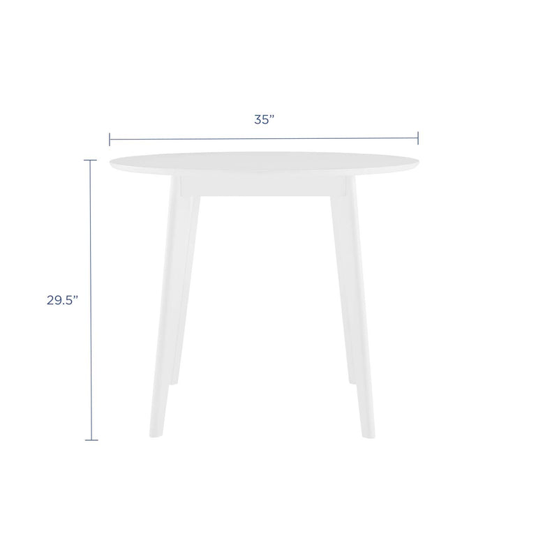 Create an atmosphere of cozy revelry with the Vision 35” Round Dining Room Table. Sturdily constructed from wood veneer and MDF with four tapered wood legs, this dining table features a sleek mid-century modern style. A round top sets the Vision Dining Table makes this a most versatile and space-saving piece. Instantly update any dining room, kitchen, breakfast nook, or dining area decor with this retro-modern dining table. Seats up to 4 people. Assembly Required.