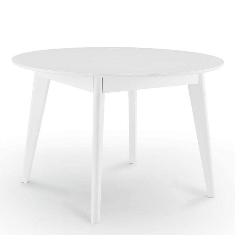 Sleek Mid-Century Style Mid-Century Modern Style Round Modern Table Solidly Constructed Tapered Wood Legs Seats Up to 5 Assembly Required