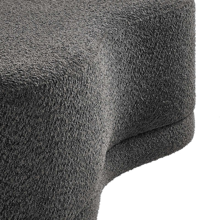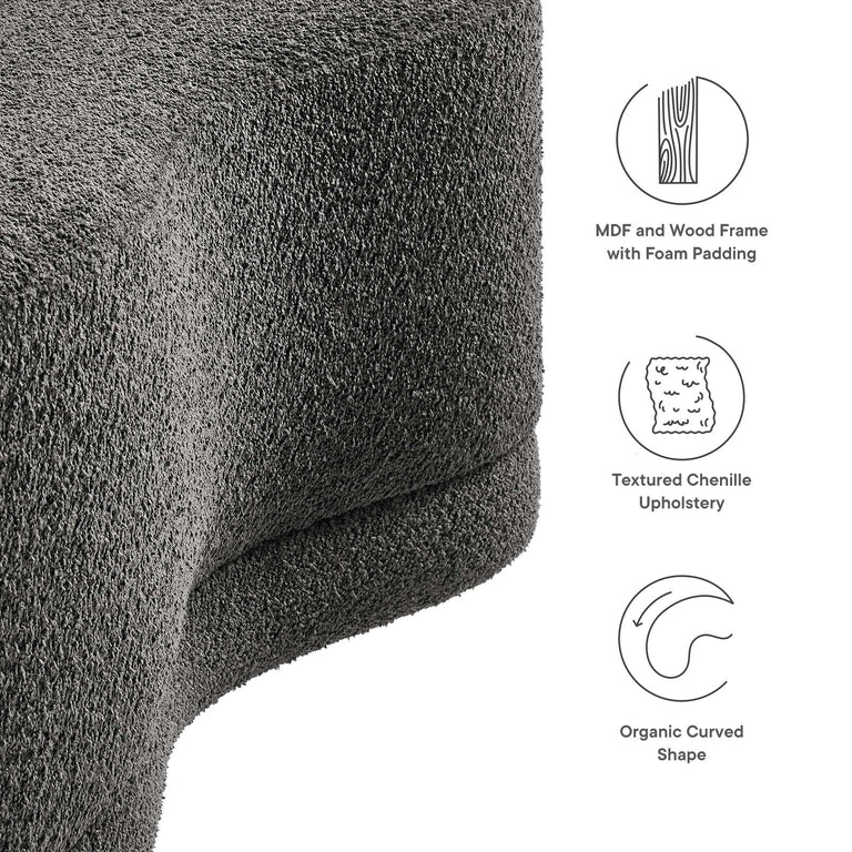 The Nimbus Ottoman, with its organic contours and curved lines, brings a touch of modernity to any living room or bedroom. Wrapped in a soft chenille fabric with a texture similar to boucle, this upholstered ottoman elevates comfort as both a bedroom ottoman and a modern living room furniture piece. The solid frame and dense foam padding of this bed ottoman provide a stable base, rendering it a sturdy footstool perfect for propping up your feet. The Nimbus upholstered curved bench includes non-marking plastic floor glides to safeguard your floors. Whether it's used as a bedroom bench or an innovative upholstered coffee table, this soft fabric ottoman marries style with multipurpose appeal. The Nimbus accent ottoman arrives fully assembled and ready to use. Weight Capacity: 804 lbs. Set Includes: One - Nimbus 48" Ottoman Bench