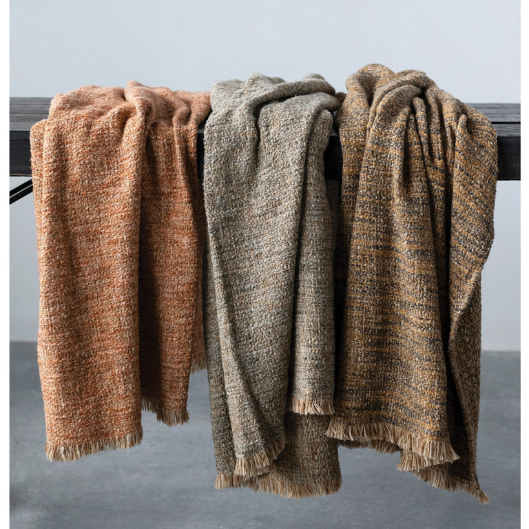 Woven Melange Cotton Blend Bouclé Throw Blanket