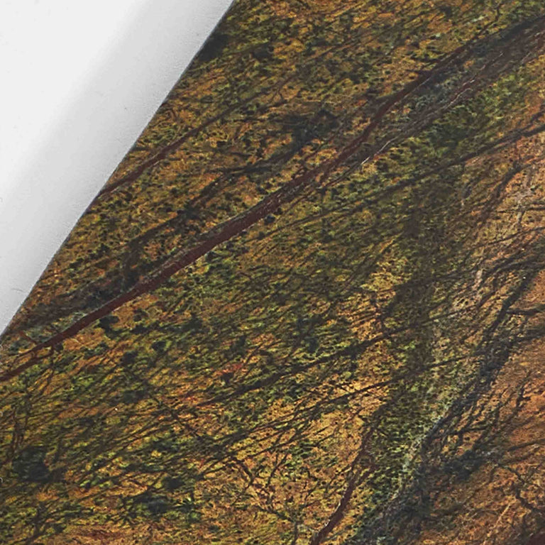 We love the incredible veining of this very special rhajistani marble. While the overall impression is a rich olive green the shots of eclectic red brown give every piece we craft in this material its own unique look. You might think of these coasters as a slice of natural topography with rivers of red running through it. (Hand wash.)
