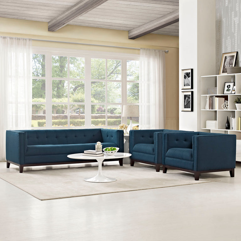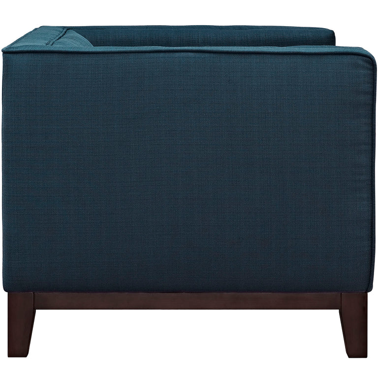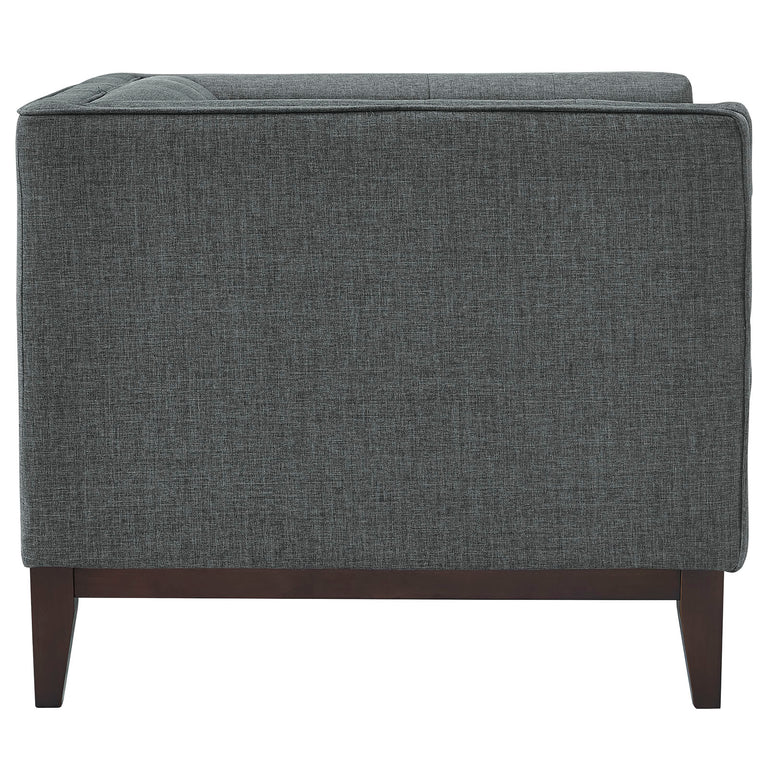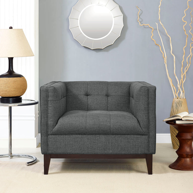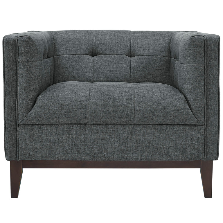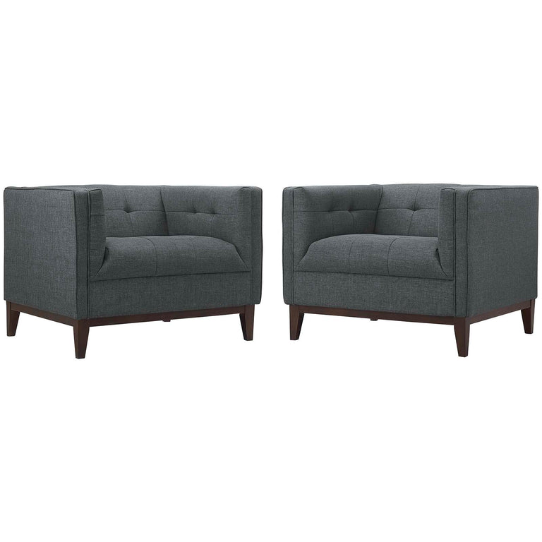 Further your sensibilities with Serve. Elegantly inset with a central line of tufted buttons and fine polyester upholstery, Serve enhances an ambiance of exceptionalism with a refined design that spans the ages. Serve features dense foam cushioning, walnut stained wood legs with non-marking foot caps, and a supportive seating experience. This modern take on mid-century design is perfect for living rooms, lounge spaces, and reception areas. Set Includes: Two - Serve Armchair