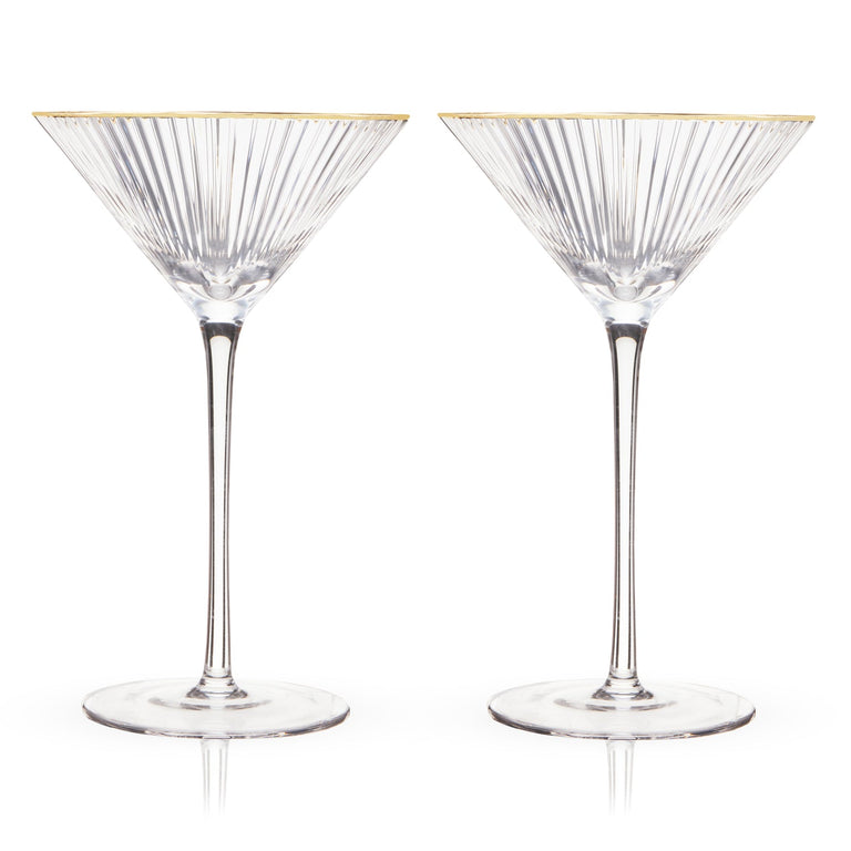 With the stunning clarity of lead-free crystal and a sleek rippled texture, this pair of gold-rimmed stemmed coupes brings understated elegance to any cocktail. This stylish glassware has a subtly contemporary shape that enhances your sipping experience and complements any decor.