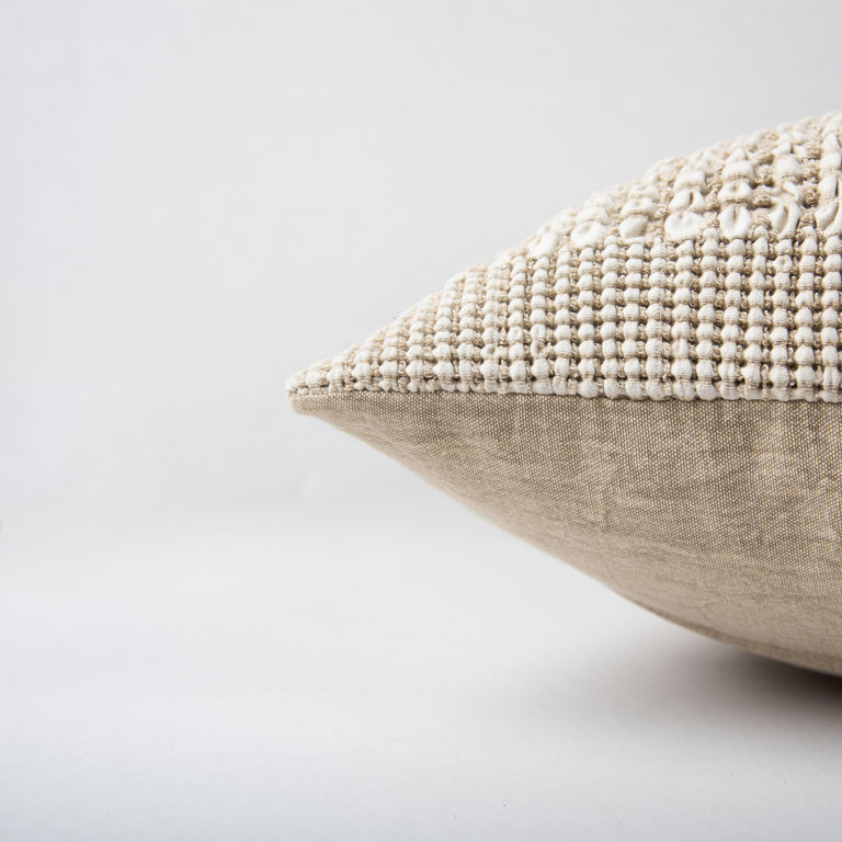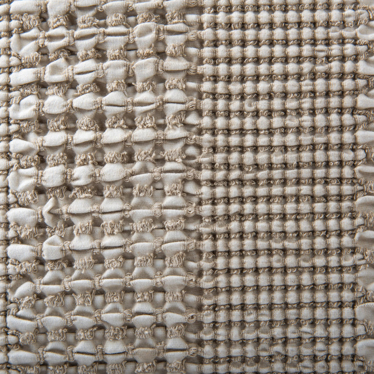 Woven in the yummiest heavily textured waffle weave, this knife edged pillow is a stylish neutral befitting any décor. The neutrality of its palette lets it blend with all creams, ivories, naturals and browns. The texture of this pillow facilitates its fun This zipper closure allows for easy removal of the fill for replacement or for cleaning.
